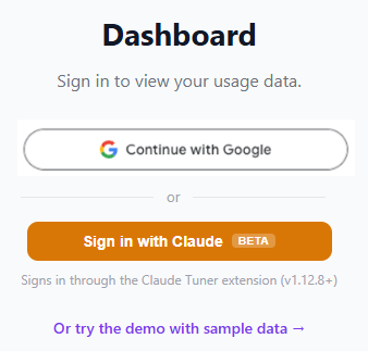 If you have the Claude Tuner extension (v1.12.8+) installed and are signed in to Claude.ai, a "Sign in with Claude" button will appear on the login screen.