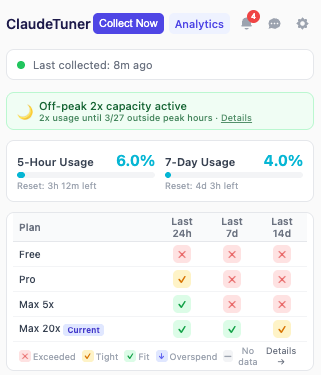 - Claude Tuner's utilization gauge already reflects the doubled limits