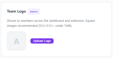 For team logos, just uploading one instantly brands your dashboard, emails, and invite pages together.