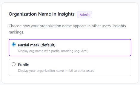 - Partial mask (default) — Masked org name (e.g. Google →