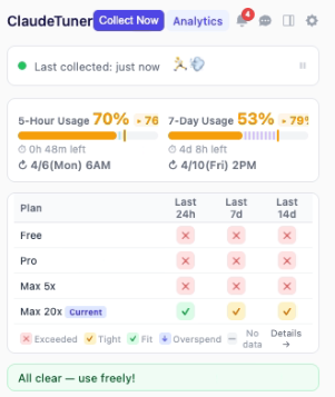 When your usage is climbing fast, collection frequency automatically doubles for better prediction accuracy. Extra data stays local only (no server load), and it returns to normal when usage stabilizes.