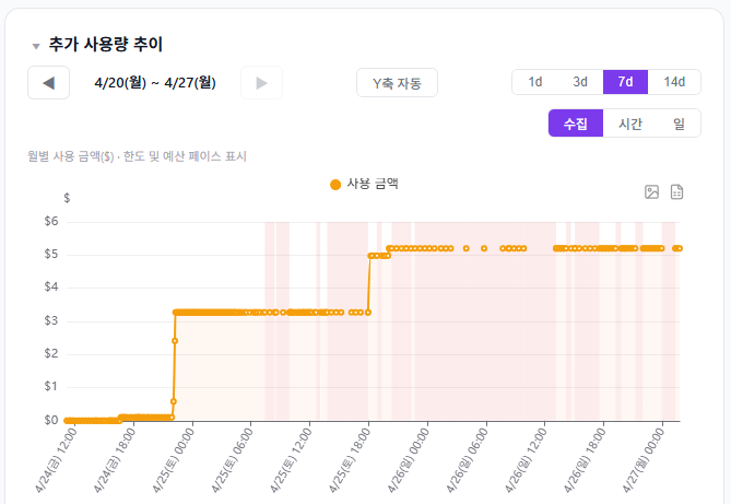 Enterprise(Usage-based) 사용자를 위한 추가 사용량(Spending) 추이 차트를 처음으로 지원합니다. 사용 금액 변화, 사용 한도, 예산 페이스를 한눈에 확인할 수 있으며, 팀 대시보드 멤버 상세에서도 Enterprise 멤버의 Spending 차트를 확인할 수 있습니다.