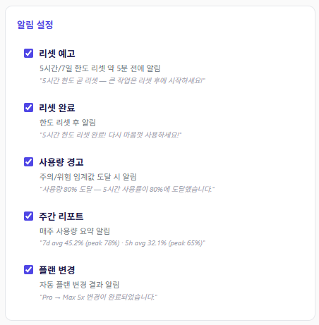 - 주간 리포트 — 매주 사용량 요약 이메일
