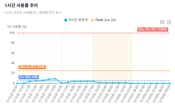 - Off-peak 시간대에는 5시간 사용량 한도가 2배로 늘어납니다.